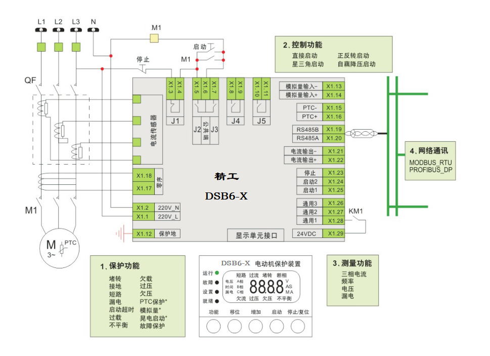 DSB6-A電動機保護裝置是基于微處理器技術(shù)開發(fā)研制的電動機保護和控制裝置。DSB6-A電動機保護裝置具備完善的電機保護功能、支持專業(yè)的電機控制方式及提供精確的監(jiān)測功能。