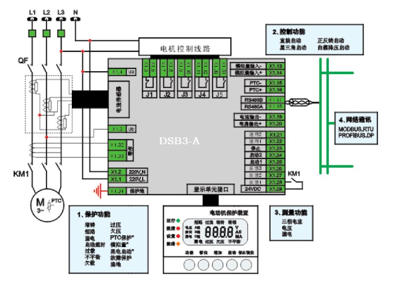 DSB3-A電動機(jī)保護(hù)裝置(電動機(jī)保護(hù)器)集測量、保護(hù)、控制、聯(lián)鎖、通訊等功能于一體,可對三相異步電動機(jī)和增安電動機(jī)進(jìn)行保護(hù)控制,是石油、化工、煤炭、電力、冶金、市政等行業(yè)電機(jī)保護(hù)的理想產(chǎn)品。