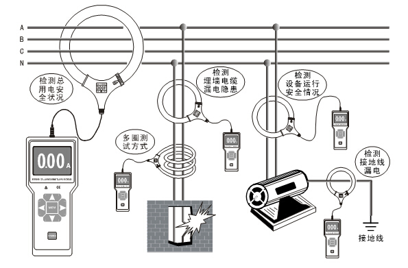 交流漏電流、大電流測(cè)量;在線監(jiān)測(cè)、記錄