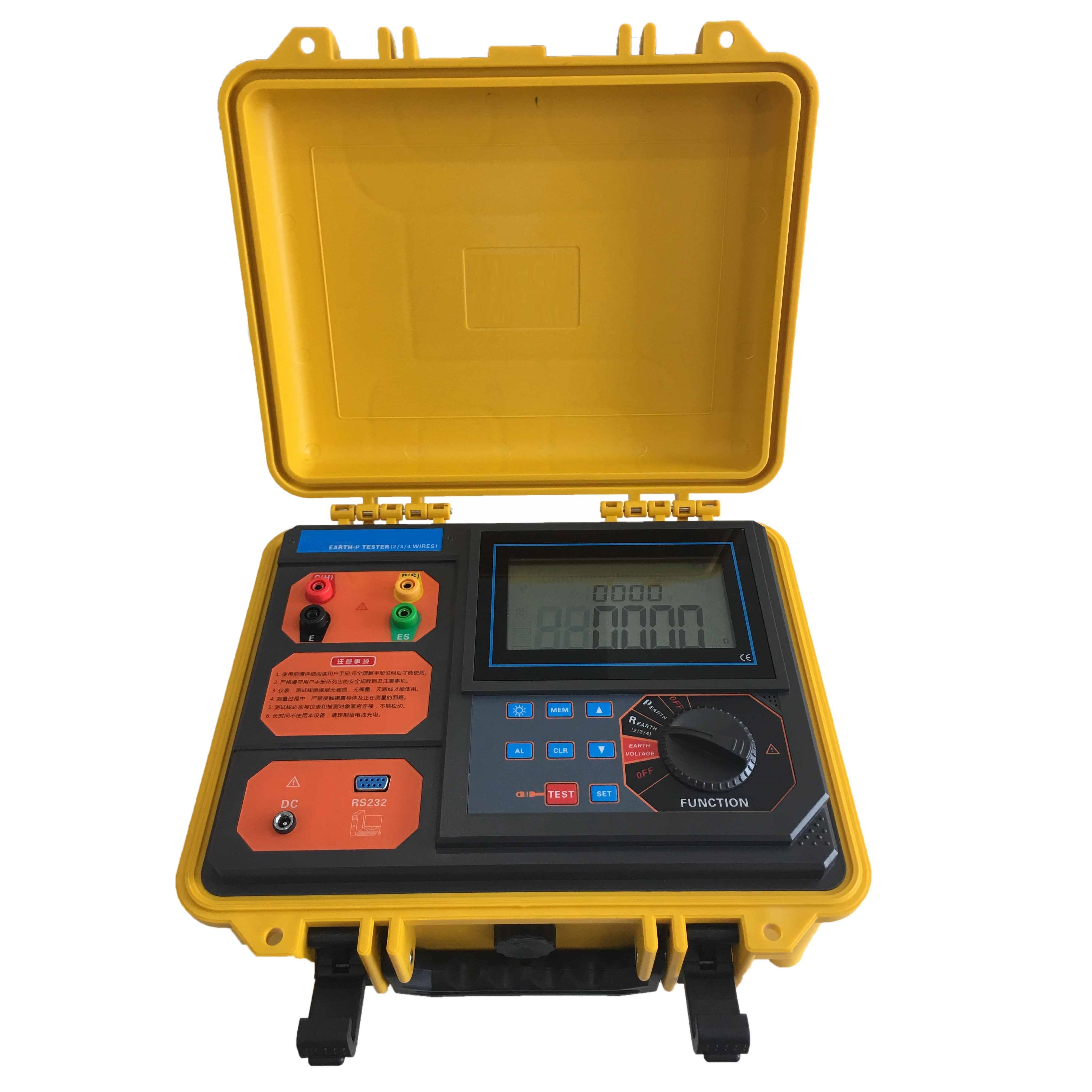 CA6480接地電阻·土壤電阻率測試儀又名精密接地電阻測試儀、四線接地電阻測試儀、二三四線接地電阻測試儀、土壤電阻率測試儀,由主機、數(shù)據(jù)軟件、測試線、輔助接地棒、通訊線等組成。主機專用工具箱式設(shè)計,用聚丙烯塑膠作為原料,添加新型復(fù)合填充料一次注塑成形,密度小、強度、剛度、硬度、耐磨性、耐熱性、絕緣性能更優(yōu)越,其箱體能承受約200kg的壓力,確保各種環(huán)境測試的高精度、高穩(wěn)定性和高可靠性。主機超大LCD顯示,具有背光,棒圖指示,一目了然。同時能存儲2000組數(shù)據(jù),通過數(shù)據(jù)軟件可以實現(xiàn)歷史數(shù)據(jù)讀取、查閱、保存、報表、打印等功能。