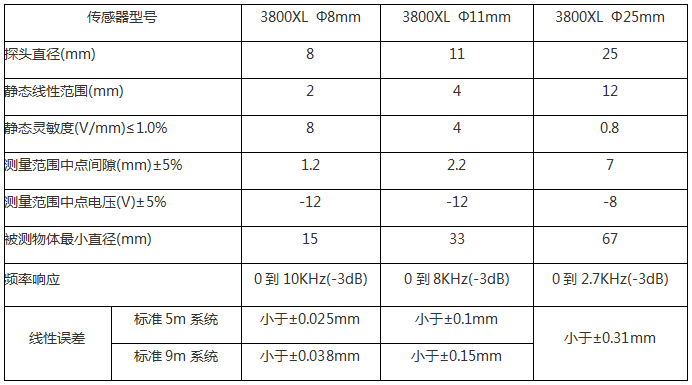 QBJ-3800XL電渦流傳感器技術(shù)參數(shù)