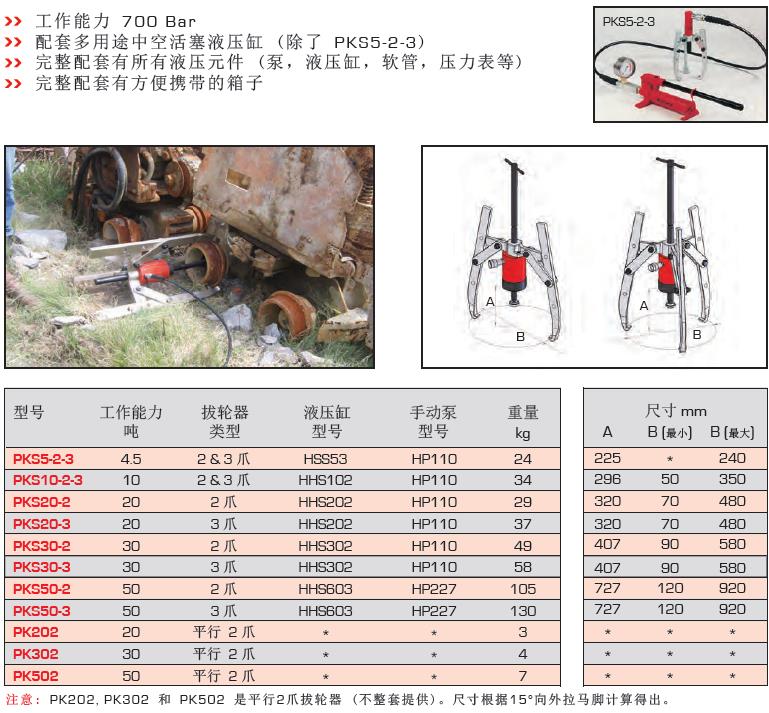 PKS液壓2爪和3爪拔輪器套組技術參數(shù):
